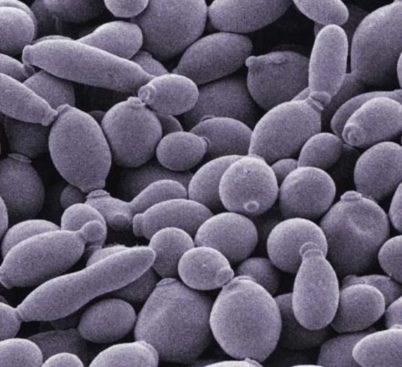 Some of which showing scars from “budding”, which is the most common form of yeast cell asexual reproduction, where a “daughter” cell breaks off from it’s “parent” cell, leaving a “budding scar" on the parent cell.